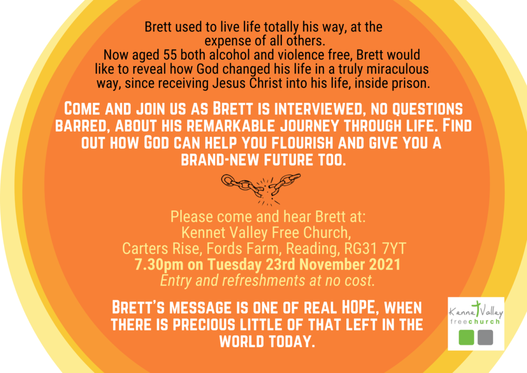 Brett Parker Evening 23 November 2021 7:30 pm – 9:00 pm Kennet Valley Free Church Fords Farm Carters Rise Calcot Reading RG31 7YT Get Directions
